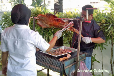Katering akikah di sebuah perumahan semi-elit di Ampang Jaya, Ampang, 15 Jan. 2012. Hampir kesemua tetamu merupakan warga Malaysia berketurunan Arab. Lusiana Catering menyediakan menu seekor kambing akikah, sajian hi-tea berat dan servis kanopi.